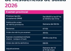 RESIDENCIAS DE SALUD: COMIENZA EL PRIMER LLAMADO AL EXAMEN PROVINCIAL