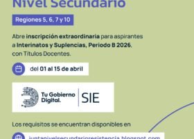 NIVEL SECUNDARIO: ABRE INSCRIPCIÓN A INTERINATOS Y SUPLENCIAS PERÍODO “B” 2026