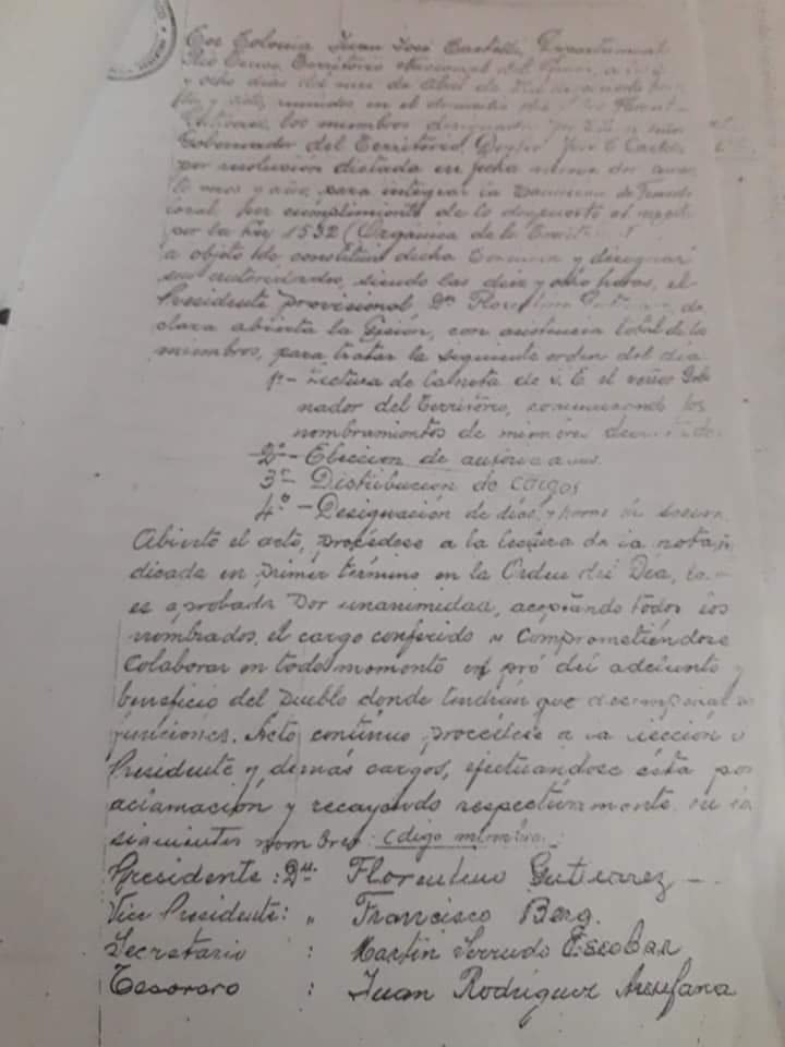 El 19 de febrero de 1938 fue firmado el Decreto por el cual se reconoce al nuevo pueblo con el nombre de Castelli.