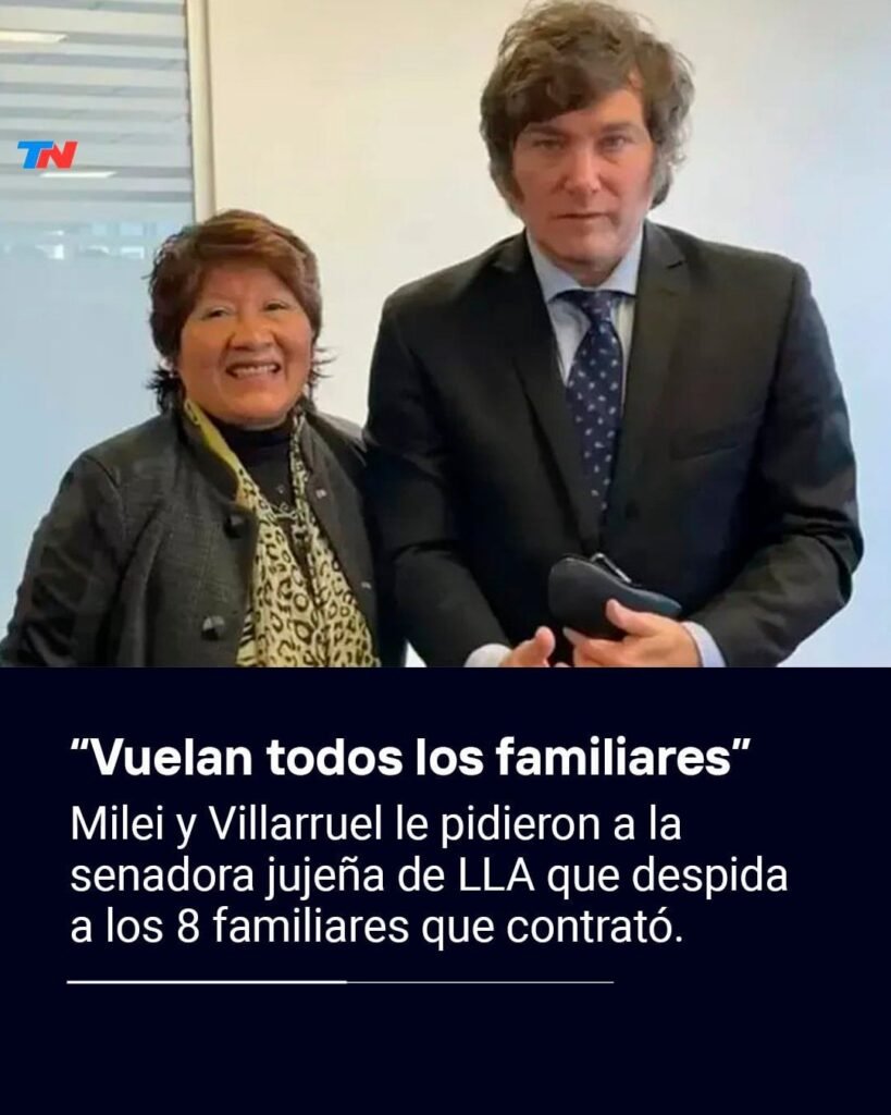 Javier Milei y Victoria Villarruel instaron a la senadora libertaria Vilma Bedia para que despida a los 8 familiares que contrató en distintos cargos en la cámara Alta.