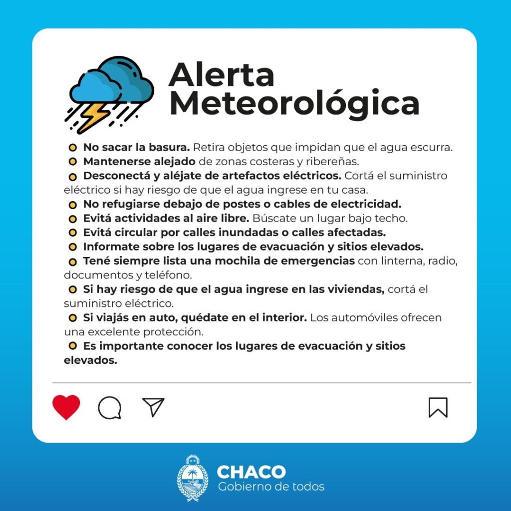 La Administración Provincial del Agua (APA) alertó que, desde la noche de este viernes se esperan tormentas fuertes en gran parte de la provincia, con fenómenos más intensos en el este del territorio chaqueño. En ese marco, instan a la población a tomar los cuidados necesarios y recordaron las líneas de comunicación y contacto ante contingencias.