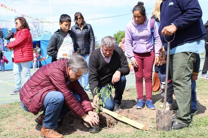 Además junto a padres, niños y niñas, como padrinos, plantaron varias especies arbóreas alrededor del playón deportivo.