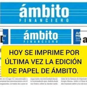 ℹ️ El diario Ámbito Financiero dejará de salir en papel tras 47 años ininterrumpidos. La noticia se conoció este jueves 25 de enero luego de que el director del medio, Julián Guarino, oficializara la decisión a través de un texto enviado a los empleados. La últimá edición saldrá este viernes 26.