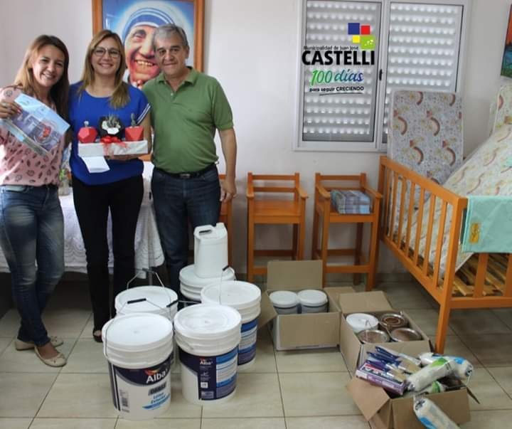 El intendente NIEVAS acompañado de la Secretaria de Desarrollo Social Sra Laura González, entregaron donaciones a dicho hogar como son Cunas, Ropa de cama, colchones, pinturas y materiales para pintar el hogar además de entregar los folletos con la información de dicho lugar.