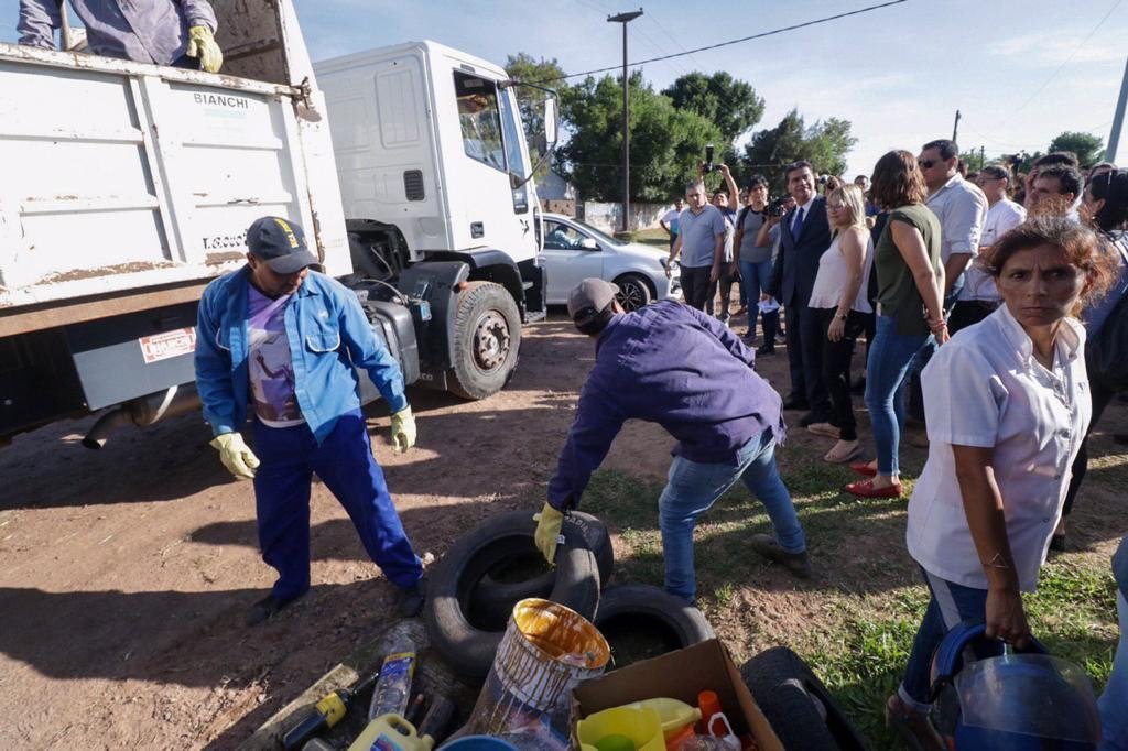 El gobernador y la vicegobernadora acompañaron el operativo de limpieza y descacharrado que inició en el centro de salud y se extendió hacia los barrios 20 Viviendas y 45 Viviendas de la localidad.