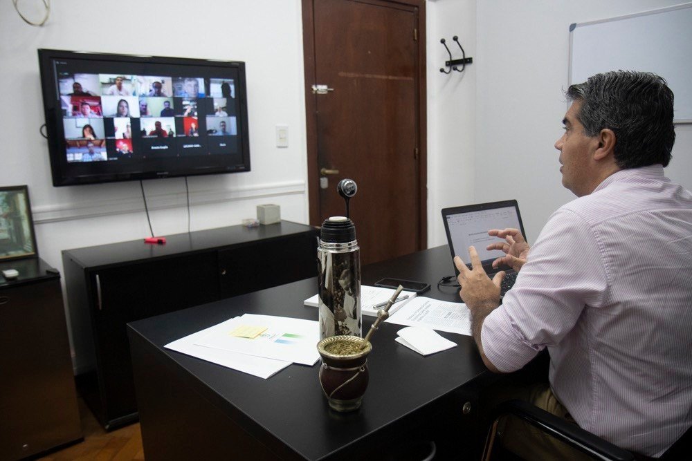 El gobernador Jorge Capitanich, mantuvo una teleconferencia con referentes de las distintas cámaras de comercio de la provincia y el titular de la Federación Económica de la Provincia del Chaco (FECHACO), José Luis Cramazzi, para delinear acciones conjuntas en el marco de las nuevas medidas anunciadas ayer, correspondientes a la cuarentena administrada.