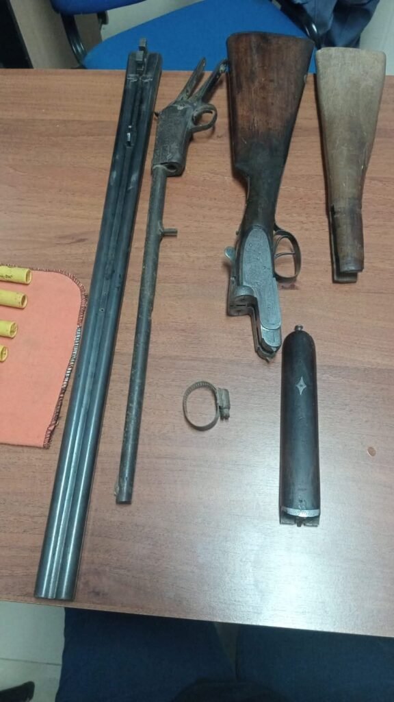Durante el allanamiento se logró el secuestro de un arma de fuego desarmada compuesta por cinco piezas (dos tubos cañón – uno con numeración 88885 –, dos culatas de madera – una con la misma inscripción – y un fragmento tipo chimasa sin numeración visible).