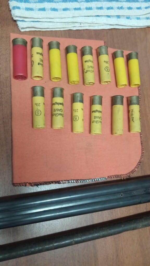 Trece cartuchos calibre 20 (ocho marca Remington y cinco sin leyenda), un cartucho calibre 12 color rojo, sin leyenda. Todos los elementos se encontraban sin percutar.