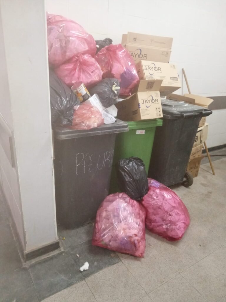 Sin personal de limpieza la basura de una semana acumulada a metros de la guardia.