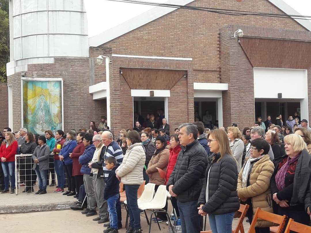 Alas 10:30 dio inicio a la Celebración de la Santa Misa Presidida por el Cura Párroco José Luis Steeman de la que participó el Intendente Oscar Alberto Nievas y su Esposa la Secretaria de Desarrollo Social Laura González y una multitud de feligreses y devotos.