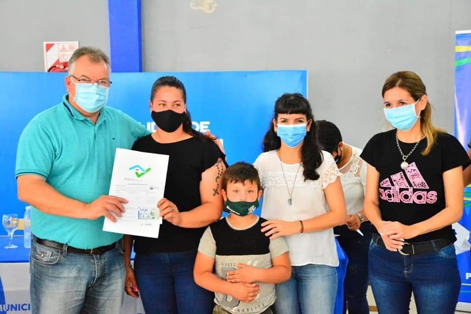 En el marco del Programa Vivienda Adecuada (PVA), en la mañana del sábado el intendente Pío Sander junto a la Vicegobernadora Analia Rach Quiroga, la presidenta del Concejo Deliberante Karina Soledad Rach, el secretario de gobierno Ismael Pablo Barnes y el secretario de Desarrollo Social Javier Bender, concretaron la entrega a 46 beneficiarios más de la localidad, la tarjeta Tuya (IPDUV), para terminación de vivienda.