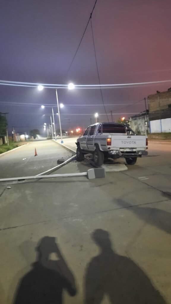 El siniestro ocurrió alrededor de las 6 de la mañana de este domingo cuando una camioneta Toyota Hilux embistió a una torre de las nuevas luminarias led de la avenida Leandro Alem al 90.
