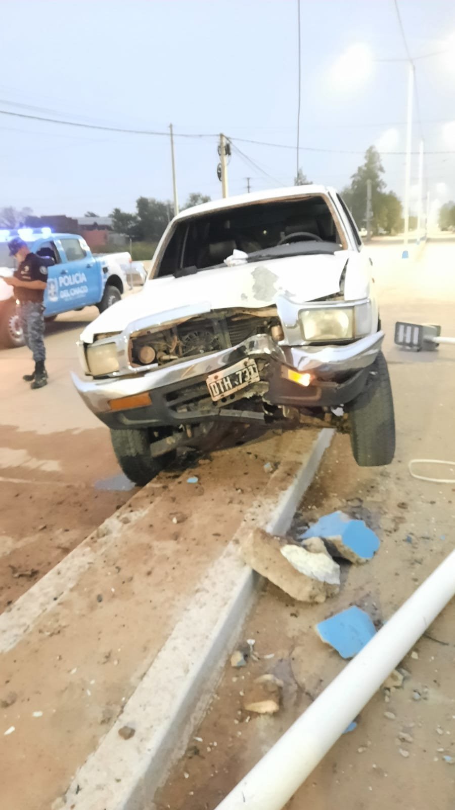 El conductor, identificado como L.L. de 24 años, domiciliado en Quinta Muñoz, fue trasladado al hospital local para control médico; mientras que el rodado quedó secuestrado en la Comisaría I de esta ciudad. Se desconoce, hasta el momento, la causa del accidente que que derribó una de las jirafas del nuevo alumbrado público inaugurado el pasado fin de semana; como así también daños en el rodado.