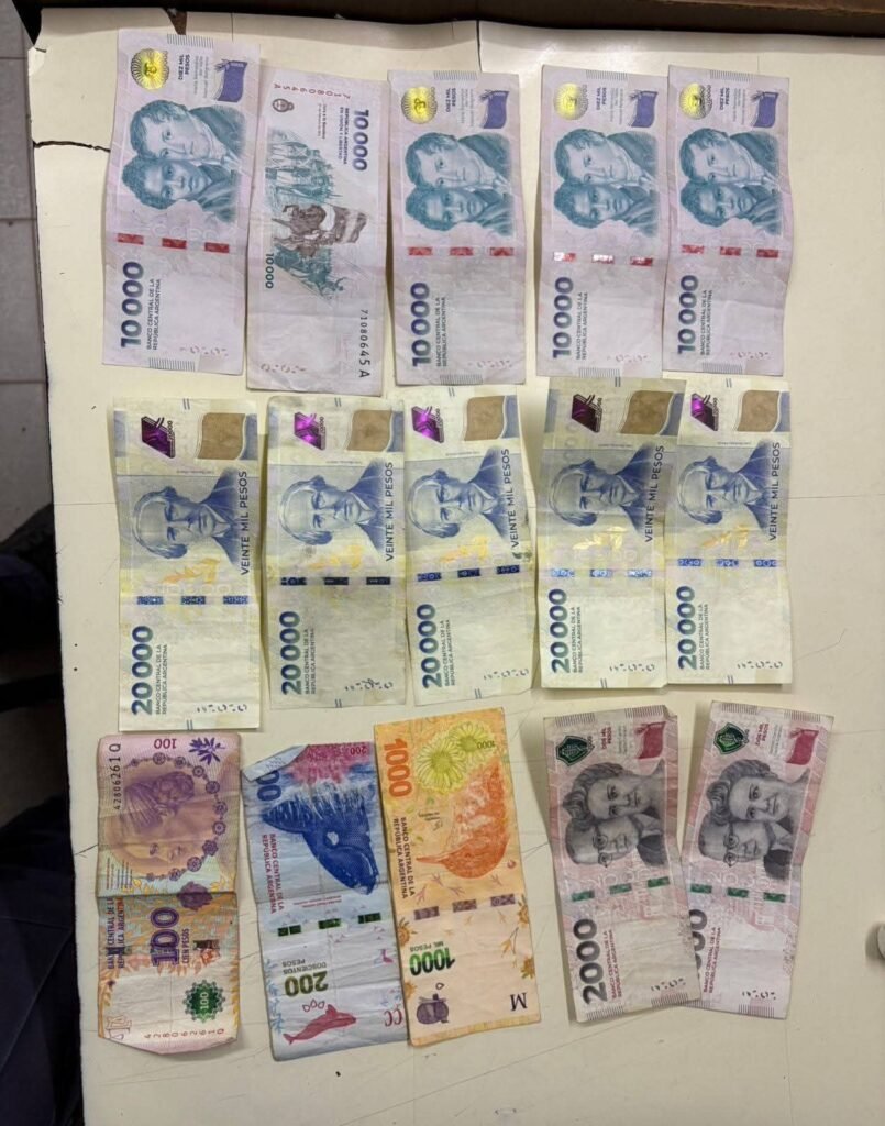 *(155.300)* Pesos discriminado en (05) billetes de $20.000, (05) Billetes de $10.000, (02) Billetes de $2.000, (01) Billete de $1.000, (01) Billete de $200 y (01) Billete de $100.