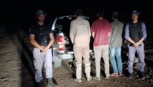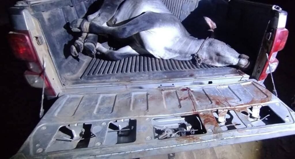 Paraje El Salado – Dpto. General Güemes, distante unos 20 kilometros de Castelli, observan sobre camino vecinal una camioneta, marca chevrolet, doble cabina, y tres personas, quienes estaban en plena etapa de carguió de un animal vacuno vivo en la parte caja carga del rodado, donde se logro SECUESTRO de