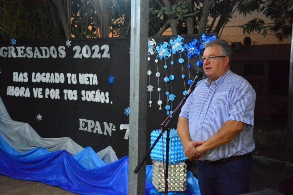 📢El intendente Pio Sander en su discurso destacó la importancia de culminar los estudios haciendonina reseña muy importante de las consecuencias de la pandemia y en donde docente y directivos de cada institución debieron reinventar estrategias para acercar los contenidos a los alumnos.