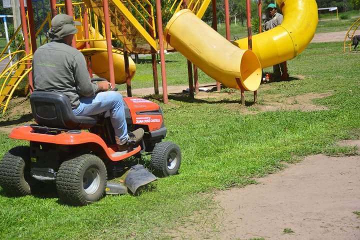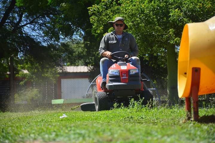 El municipio está llevando a cabo un importante trabajo de mantenimiento en los espacios verdes y recreativos, gracias a la incorporación de nuevas maquinarias. En este momento, se están centrando en el Polideportivo municipal, ya que las recientes lluvias han provocado un crecimiento excesivo de malezas.