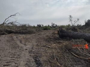 La intervención policial se dio en horas de la mañana, que se constituyeron hasta un establecimiento rural ubicado en paraje Pampa Toloza – Departamento General Güemes, dónde se constató desmonte ilegal de unas 67 hectáreas aproximadamente.