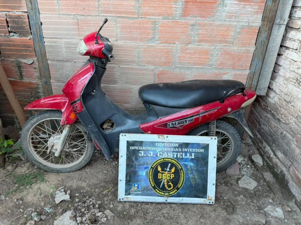 Ante la presencia de testigos, los efectivos policiales inspeccionaron el lugar y el motovehículo, logrando el hallazgo de: