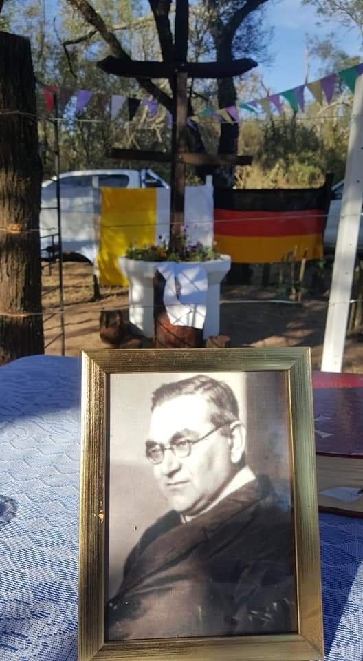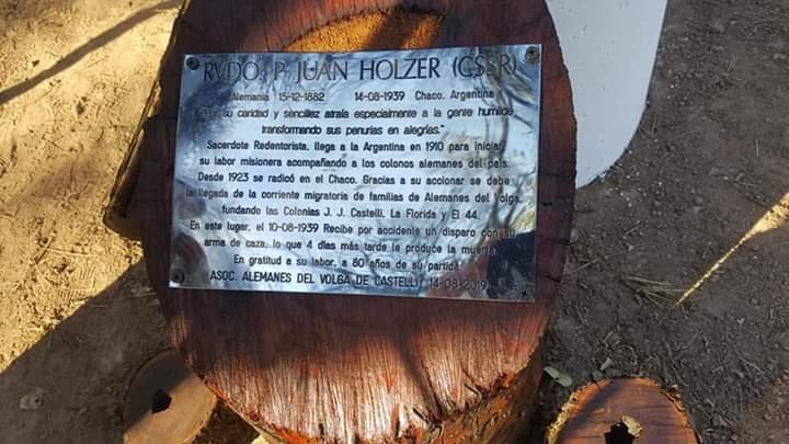 La ceremonia se concretó alrededor de las 9, con el marco del monte chaqueño, dando inicio con una peregrinación a lo largo de los 400 ondulantes metros que llevan hasta el mencionado lugar, encabezada por la cruz del desaparecido sacerdote con la entonación de oraciones y plegarias en español y alemán. Seguidamente se procedió al descubrimiento de la placa recordatoria donada por la Asociación Alemanes del Volga de Castelli en donde se puede leer: ‘Por su caridad y sencillez atraÃa especialmente a la gente humilde, transformando sus penurias en alegrÃas‘, seguida de una descripción de su labor misional.