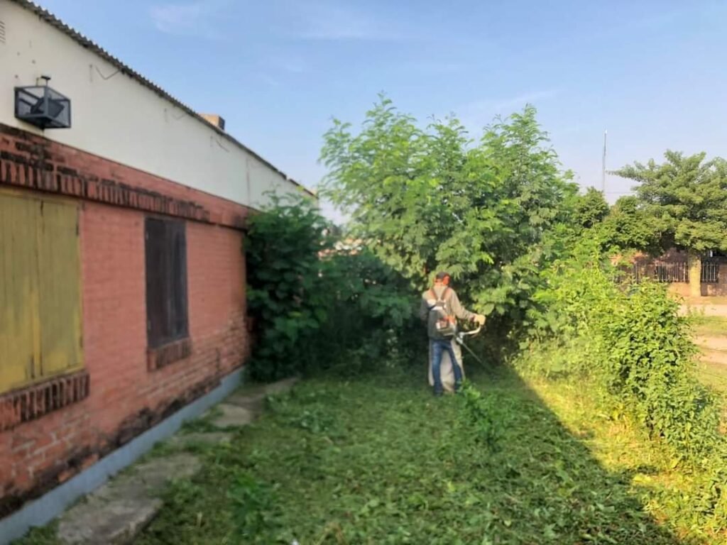 Tras el avance de la maleza después de periodos de lluvias caídos días atrás, la secretaría de relaciones con la comunidad colabora con el mantenimiento en distintos barrios e instituciones de la ciudad.