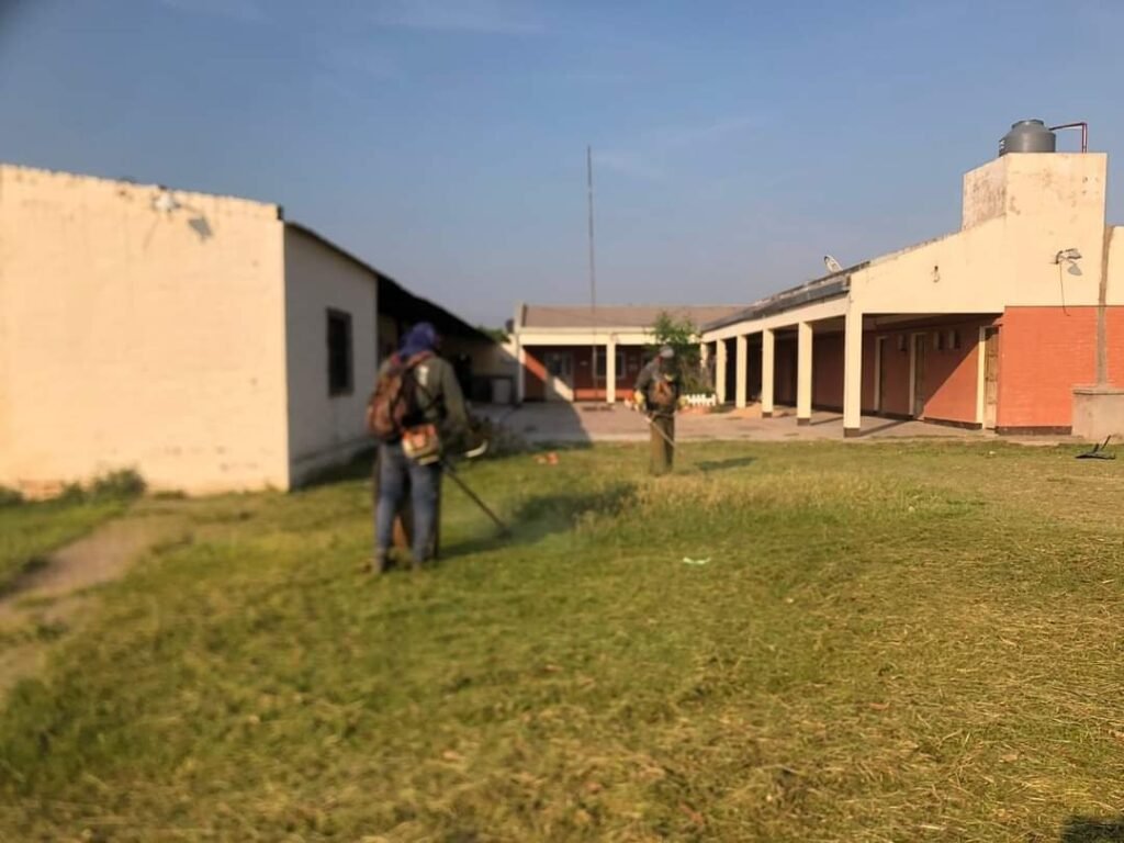 La subsecretaria de relaciones con la comunidad a cargo de Fabricio Benítez avanza en la limpieza de instituciones del medio. En esta oportunidad una cuadrilla equipada con motoguadañas lleva adelante trabajos de desmalezado y limpieza del Playón deportivo del barrio 95 viviendas, del circuito del polideportivo municipal y la escuela del barrio matadero.