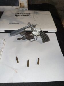Además, fue secuestrado de manera impostergable un arma de fuego tipo revólver calibre .22 marca Bagual, junto a (03) cartuchos sin percutar.