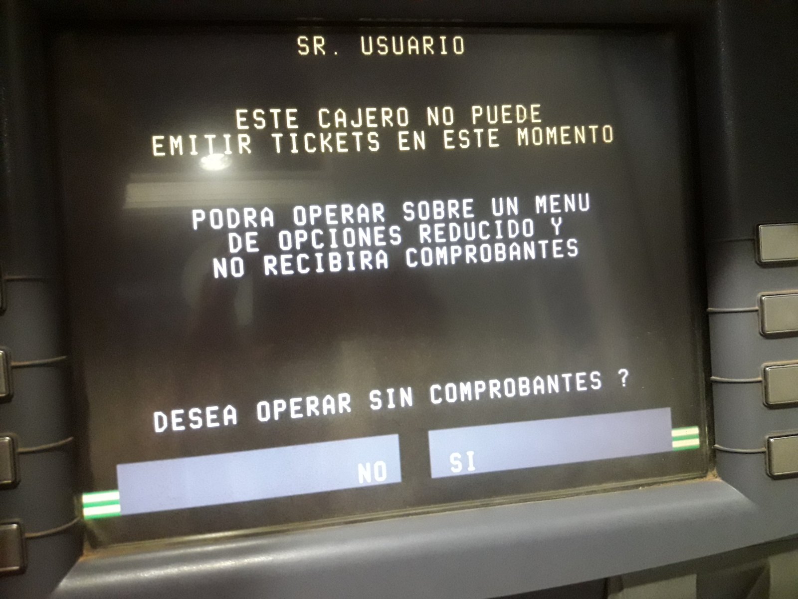 Personas que recorrían de un cajero a otro sin lograr resultados positivos. Algunos estaban literalmente apagados como el caso del que se encuentra en el Hospital del Bicentenario, otro cono el del INSSSEP fuera de servicio, los dos de Av Güemes no podían emitir tickets mientras que los de la sede del banco por calle Dr Vazquez no contaban con dinero.