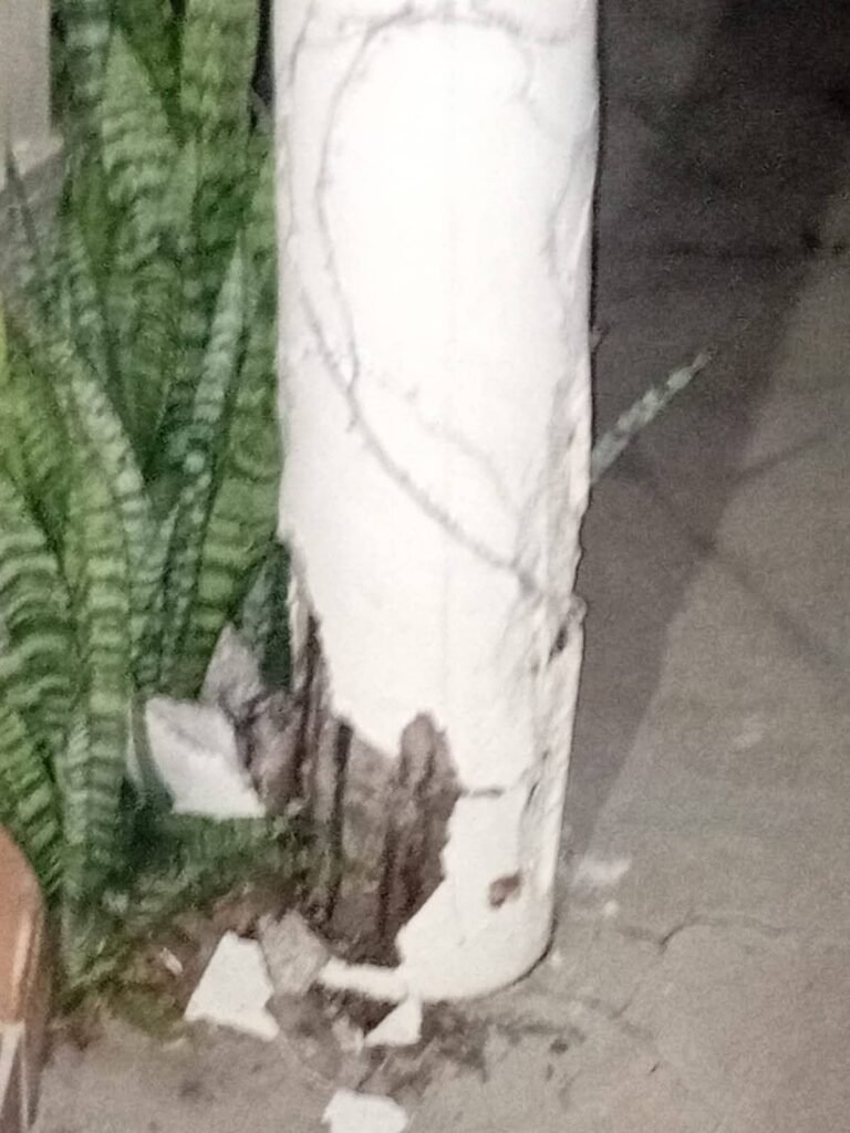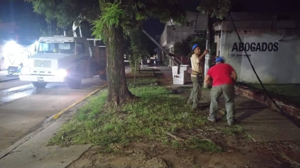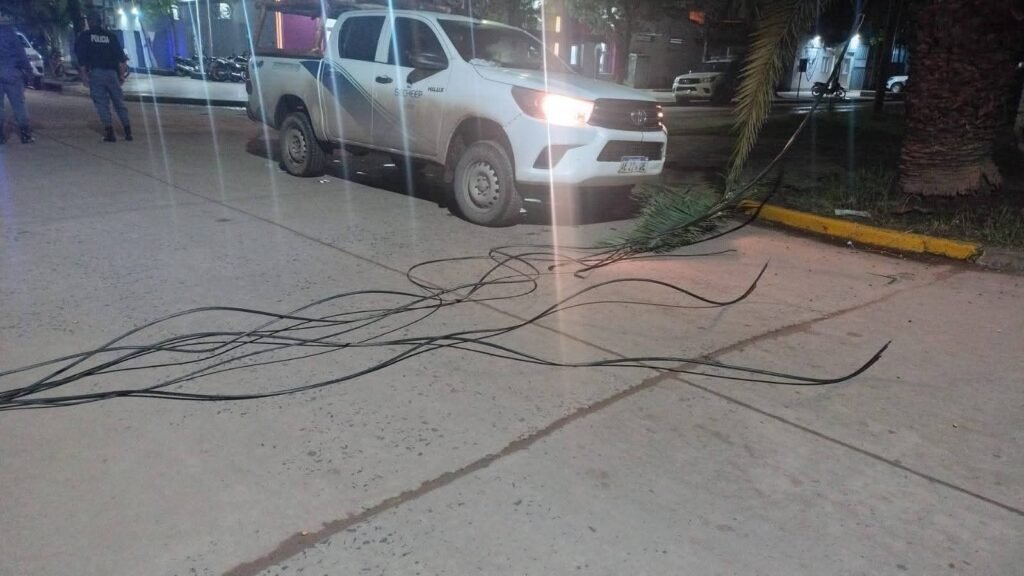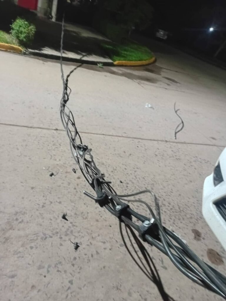 Además una de las líneas se enganchó a una columna de cemento que pertenencia a una vivienda provocando daños materiales.