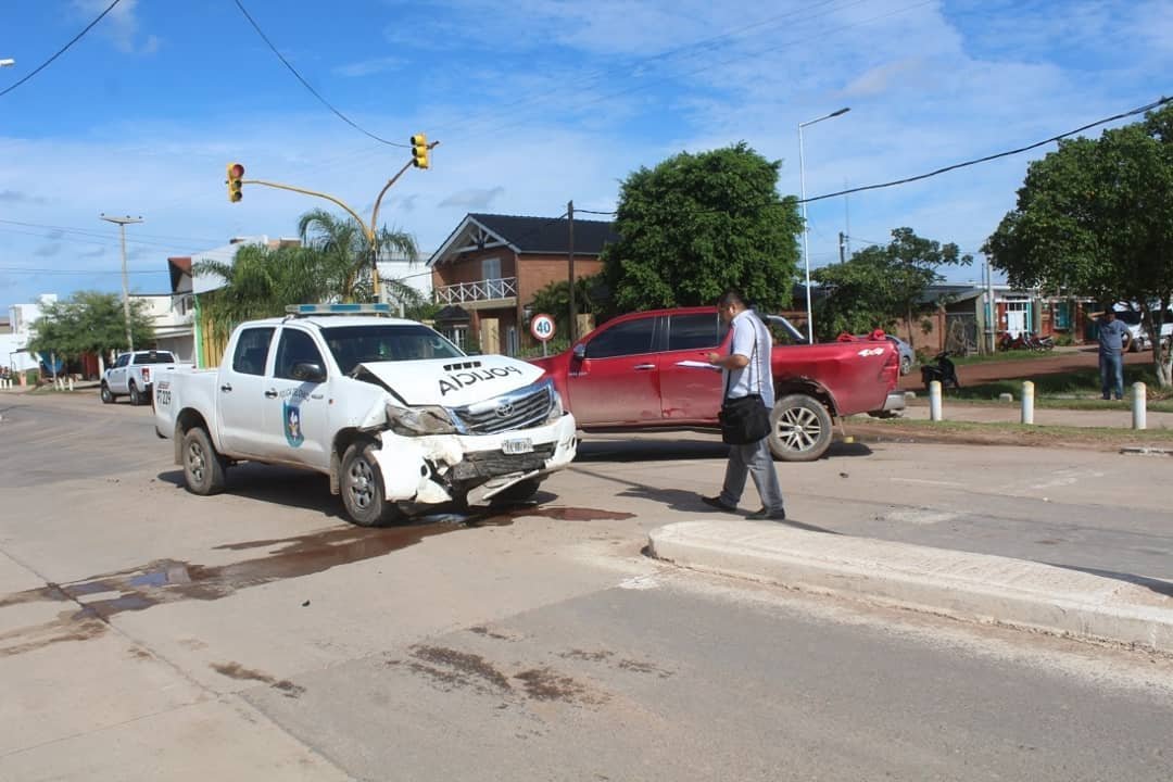El accidente ocurrió aproximadamente las15:45 hs, ingreso a nuestra ciudad sobre Av. San Martín y calle Juan José Paso entre un patrullero policial marca toyota hilux, identificado como PT-229- dominio MTV- 238.La misma asignada a la Comisaría de Castelli, conducida por el Cabo de Policía- César González, quién era acompañado por el Agente de Policía – Blanco Luis, colisionando con una camioneta Hilux roja conducida por O. C.(44) domiciliado en Miraflores; resultando ambos vehículos con daños materiales y sin lesionados.