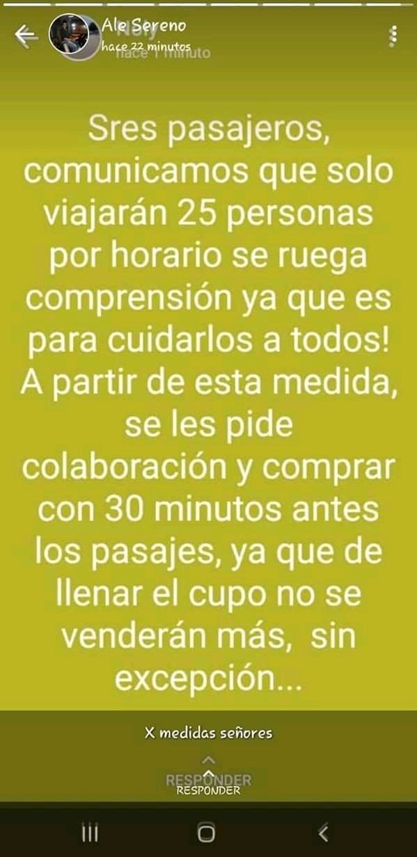 A través del mismo se comunica que solo podrán viajar 25 personas por coche y se solicita sacar el pasaje con anticipación