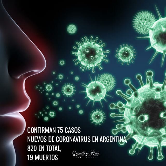 El Ministerio de Salud de la Nación confirmó este domingo la muerte de un hombre que tenía coronavirus. Además, informó que hay 75 nuevos casos, por lo que la cifra de infectados ascendió a 820 en todo el país.