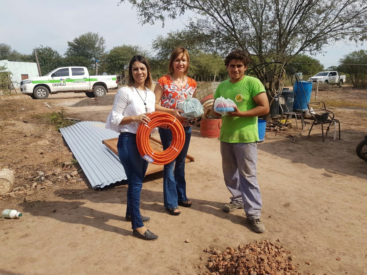 Laura González estuvo acompañada de la Asistente Social Flavia Ruiz quienes hicieron entrega de materiales para mejoramiento habitacional. A su vez la Secretaria felicitó al productor Juan Carlos Sodano por llevar adelante los emprendimientos para el sostén familiar y que a su vez viene a engrosar la cadena productiva de la región.