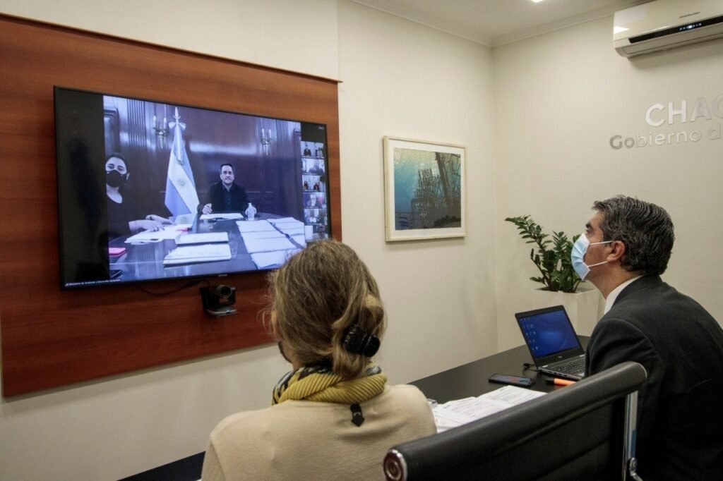 El gobernador Jorge Capitanich mantuvo esta mañana una reunión vía Zoom con el ministro de Ambiente y Desarrollo Sostenible de la Nación, Juan Cabandié y firmó contratos para la construcción de 17 techos de captación de agua de lluvia y la adquisición de 609 cocinas a leña, con una inversión de 35 millones de pesos para la provincia. “Poner a la Argentina de pie comienza cuidando nuestro suelo, nuestra gente y nuestro futuro”, aseguró el mandatario, quien estuvo acompañado por la secretaria de Desarrollo Territorial y Ambiente de la provincia, Marta Soneira.