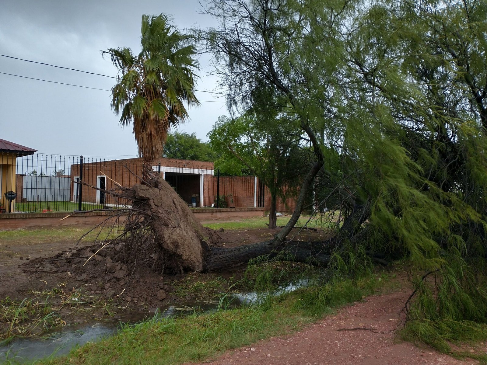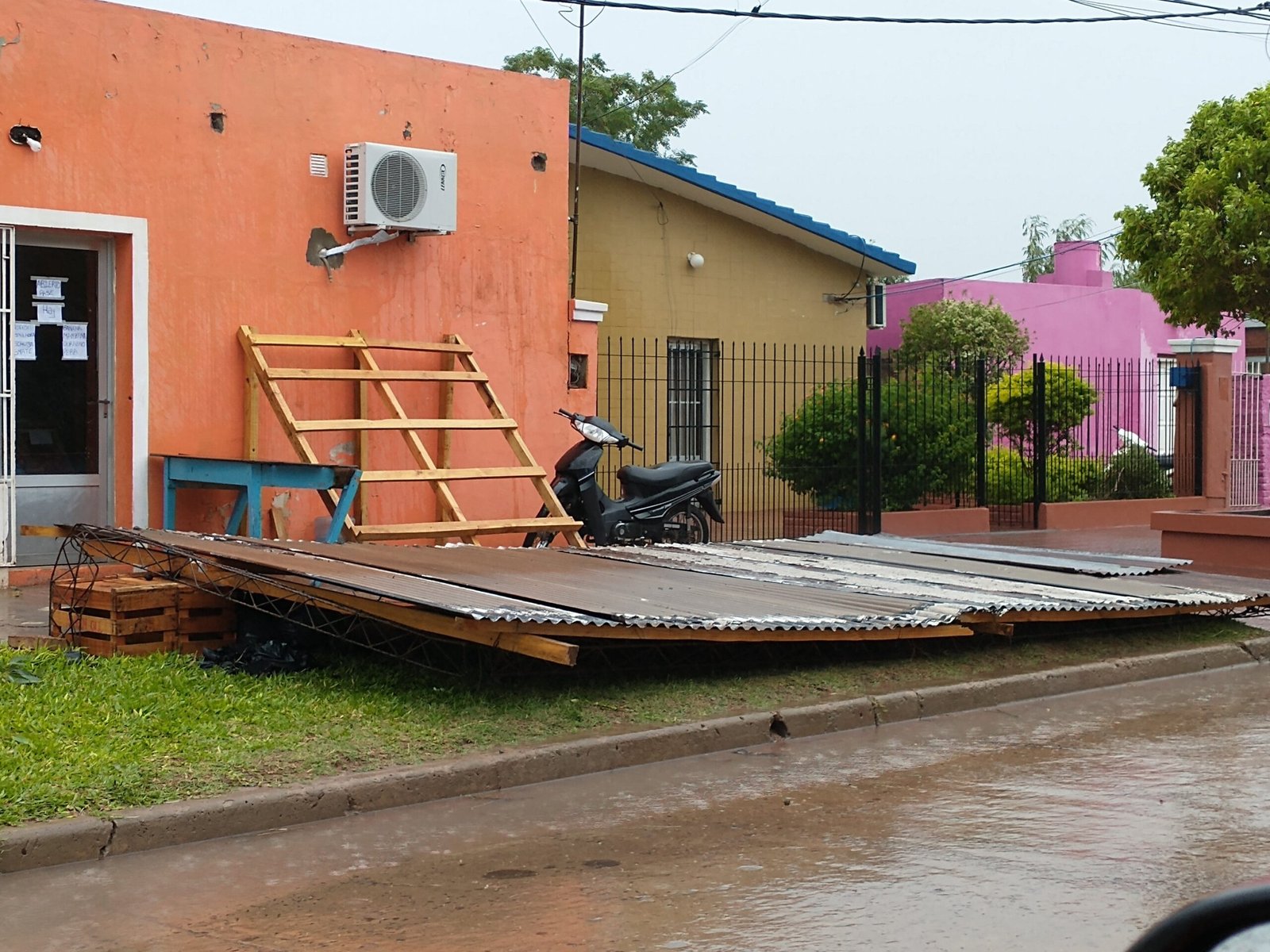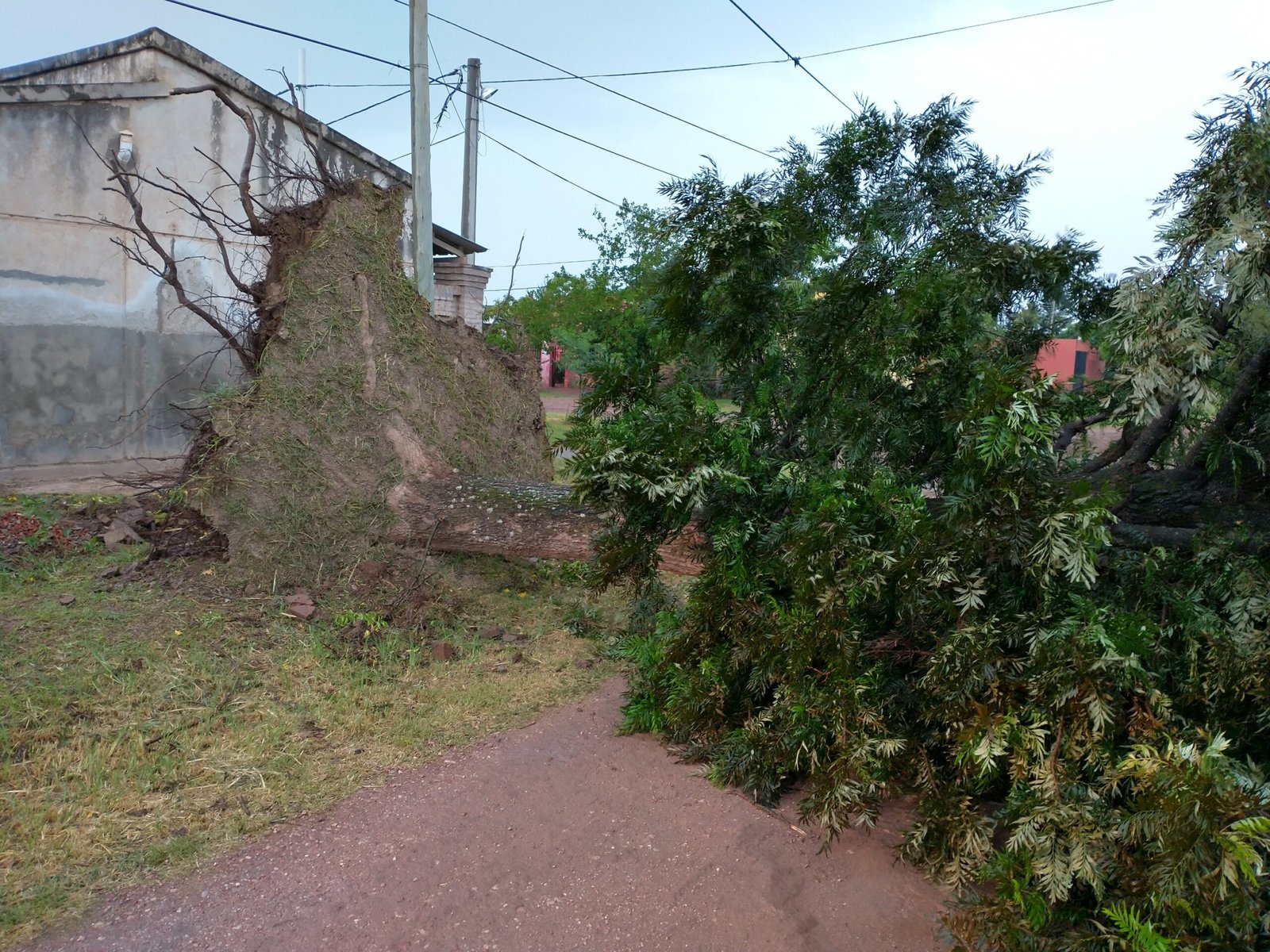 En principio fue solo viento que provocó una gran polvareda con caída de árboles, voladura de techos y muchos destrozos en la localidad. También el corte de la energía eléctrica que comienza a volver en forma paulatina.