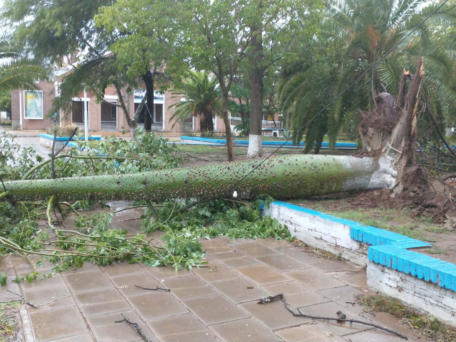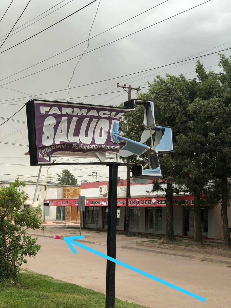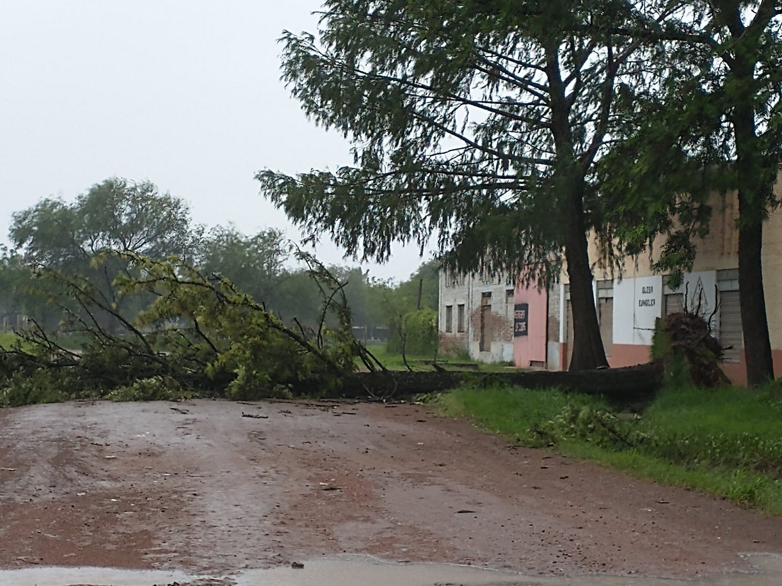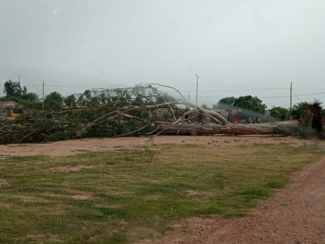 En principio fue solo viento que provocó una gran polvareda con caída de árboles, voladura de techos y muchos destrozos en la localidad. También el corte de la energía eléctrica que comienza a volver en forma paulatina.