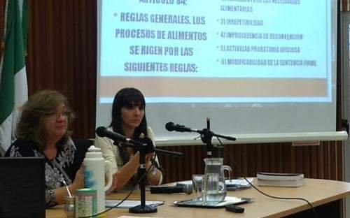 La séptima clase de esta capacitación tuvo como capacitadores a Gladys Palacios y a Alejandra Genovese, quienes trabajaron sobre tipos de procesos: urgentes y de evidencia; especiales. Principios procesales que rigen: pruebas, audiencias, prueba de testigos; notificaciones y principios procesales involucrados en los temas. Procesos vinculados a la justicia de paz.