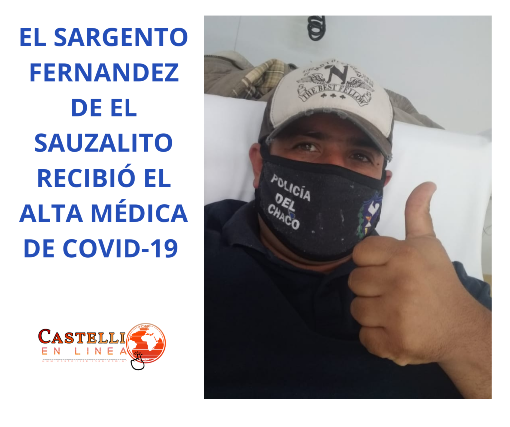 En la fecha tenemos la grata noticia de informar a la comunidad en general, que el Sargento de *PolicÃa Gabriel Armando Fernández* de la Comisaria El Sauzalito quien se encontraba internado en sala intermedia del hospital JC Perrando de la Cuidad de Resistencia por ser positivo de *COVID-19, el cual en su momento fue trasladado desde la localidad de El Sauzalito; en el dÃa de hoy martes 07 de julio obtuvo el alta medica por encontrarse en buen estado de salud.