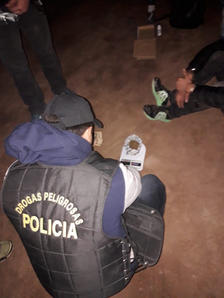 Este miercoles en horas de la noche personal se encontraba realizando recorrida prevencional cuando tomaron conocimiento por una persona quien informo que un sujeto sexo masculino, contextura delgada, se estarÃa dedicando a la venta estupefacientes en inmediaciones club Sportivo Cultural, en virtud se implementó operativo con el fin dar con el sujeto donde cercanÃas mencionado club observaron individuo similares caracterÃsticas a las anoticiadas por ello realizaron seguimiento del mismo siendo interceptado a pocos metros identificándose como personal policial oponiendo el mismo tenaz resistencia y posteriormente en presencia de testigo, requirieron datos de identidad al demorado aduciendo llamarse: O. B., (17). Posteriormente, invitaron exhibiera pertenencias extrayendo de bolsillo derecho de pantalón jeans un envoltorio de polietileno, varios colores, conteniendo en interior sustancia origen vegetal, color verde amarronada, olor caracterÃstico a Marihuana, y suma total de TREINTA ($30) PESOS EN EFECTIVO. Efectuaron prueba de campo y pesaje arrojando resultado POSITIVO a CANNABIS-SATIVA-MARIHUNA con pesaje total de CIENTO CINCUENTA Y CUATRO (154) GRAMOS. Se interiorizo pormenores a FiscalÃa Antidrogas N° 2 de la Ciudad de, se iniciaron actuaciones por Sup. Inf. A Ley N° 23.737 de Estupefacientes en Función Ley N° 7573 de Narcomenudeo a ciudadano demorado y secuestro de elementos hallados dándose intervención a Juzgado del Menor de Edad y la Familia quien dispuso sea entregado a sus tutores previa acreditación del vÃnculo.