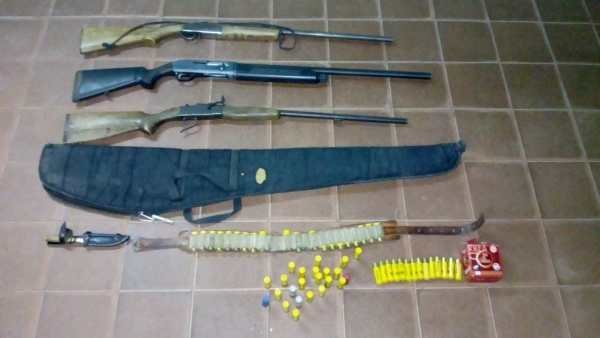 Se logró el SECUESTRO, de (01) un arma de fuego, tipo escopeta, calibre 20, con (35) cartuchos, (01) arma de fuego, tipo escopeta, calibre 16, con (02) cartuchos, y (01) un arma de fuego, tipo escopeta, calibre 12, con (20) cartuchos, (01) un cuchillo marca La misión, (01) una canana de cuero, (01) una funda color negro de poliamidas, por Sup. Inf. a LEY de Caza 5629. Los autores fueron notificados con acta de infracción.