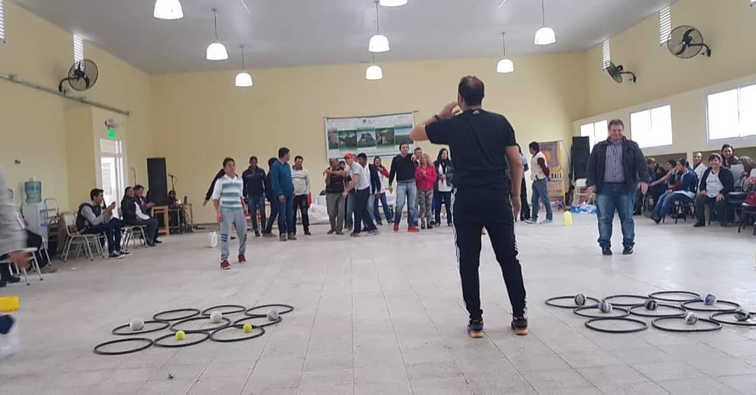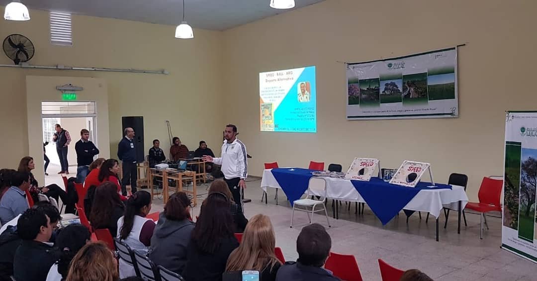 El propio profesor brindó detalles de la presentacion: «Como en el 2017 en el encuentro de ruralidades en la Montenegrina este 2018 volví a estar presente en la localidad de General San Martín cómo disertante en el taller de Educación Física presentando juegos recreativos y deportes alternativos con materiales adaptados, como broche de oro la presentación del «SPEED BALL ARG» frente a 300 docentes, en el encuentro provincial de Ruralidades el día martes 14 de agosto de 2018″. Dijo.