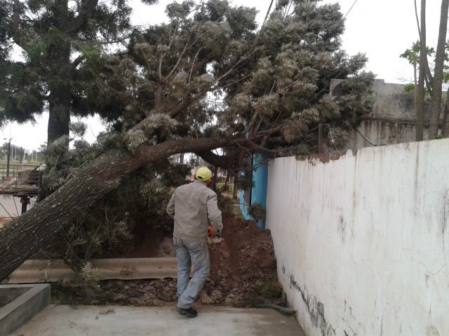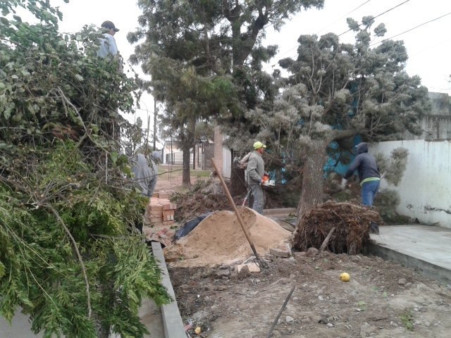 El cambio del viento con fuerte ráfagas del sur provocó la caída de un árbol sobre Av Güemes frente al pulmón Verde.