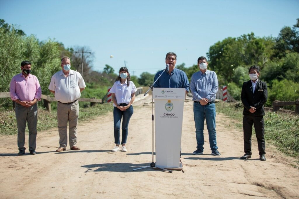 El gobernador Jorge Milton Capitanich junto a la Vicegobernadora Analia Rach Quiroga, en un día histórico, desde el puente del Paraje «La Sirena», encabezaron el acto de apertura de ofertas de licitación de la ruta del Impenetrable, que une Villa Río Bermejito y El Espinillo por la ruta 3.