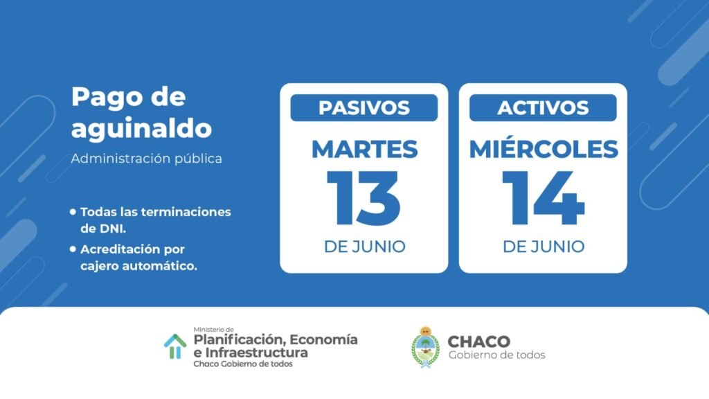 El gobernador Jorge Capitanich anunció este viernes el pago del Sueldo Anual Complementario (SAC), que se efectivizará el martes 13 de junio para las y los jubilados, mientras que el miércoles 14 será el turno de las y los trabajadores activos de la administración pública.