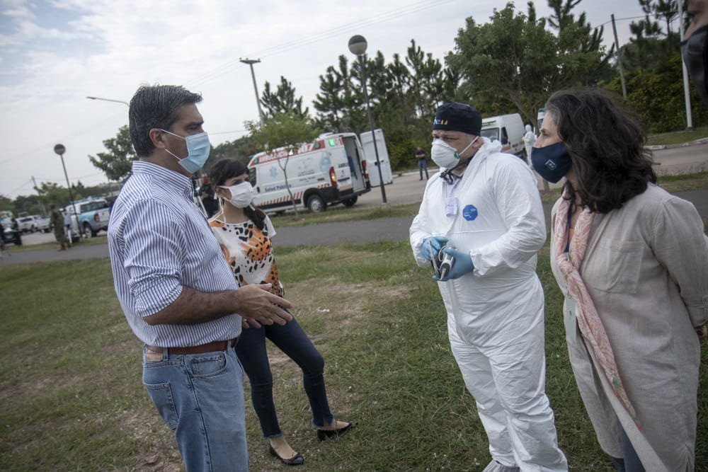 El gobernador Jorge Capitanich, junto a la vicegobernadora Analía Rach Quiroga, activó un simulacro sanitario por COVID-19 en la mañana de este domingo, comenzando en el Parque de la Democracia y finalizando en la Pastilla 6 del Hospital Perrando. El operativo simuló la atención de casos críticos, graves, moderados y leves de coronavirus. “Agradezco a todos los equipos porque salió impecable”, destacó Capitanich.