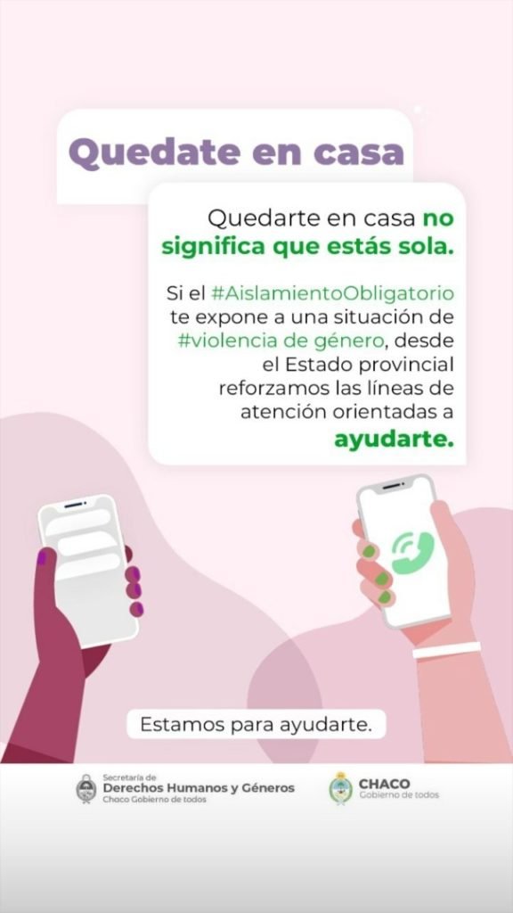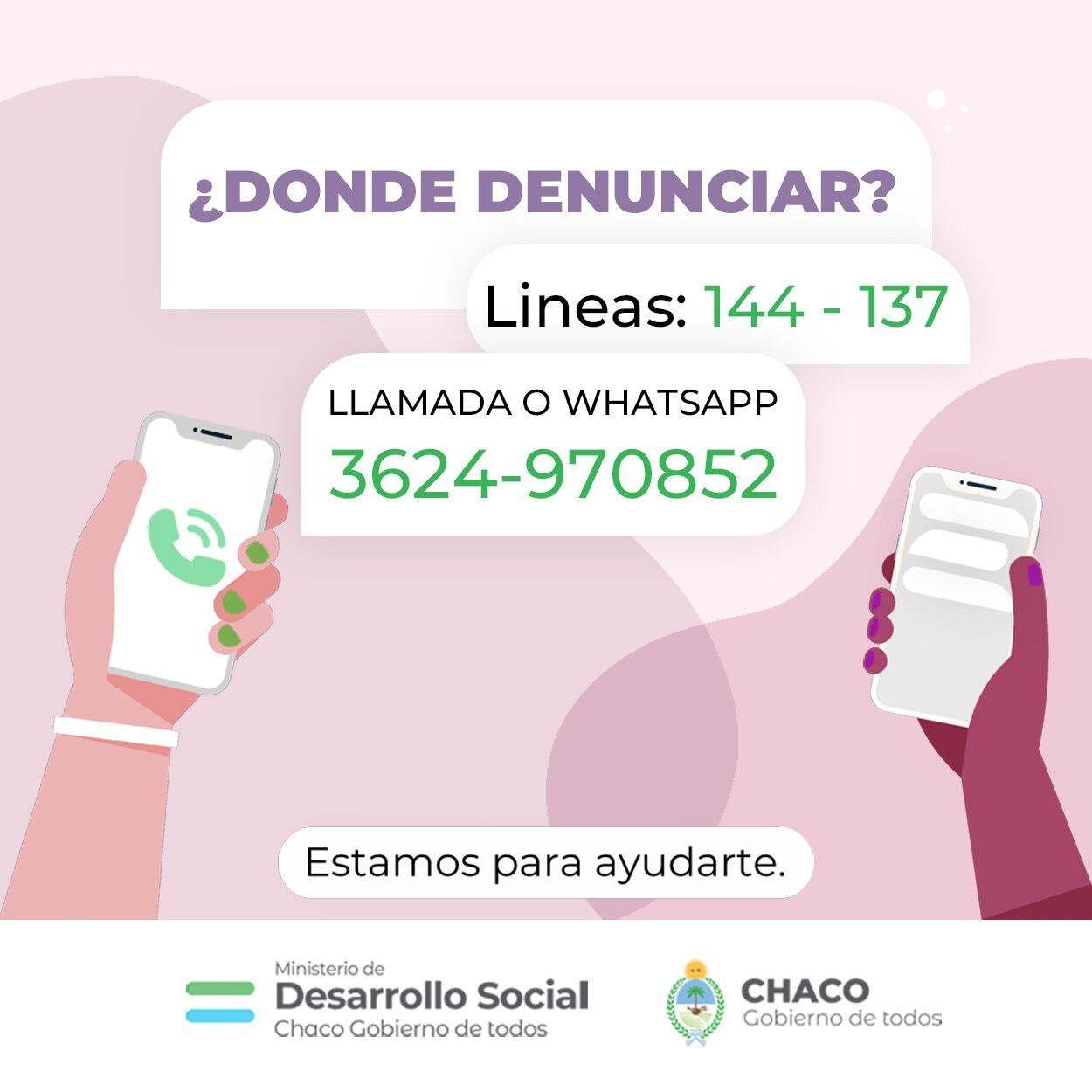 Además de continuar con el funcionamiento pleno de las vías de comunicación, se avanzó en una serie políticas públicas para profundizar la prevención. Las personas se encuentren en situación de violencia pueden asesorarse y/o denunciar a través de la línea provincial gratuita 137 o la nacional gratuita 144. También se encuentra habilitado el teléfono 3624 970852 para llamadas o whatsapps.