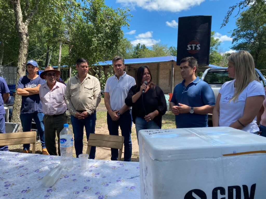 El gobernador Leandro Zdero junto al ministro de la Producción y el Desarrollo Sostenible, Hernán Halavacs, entregaron este sábado después del mediodía, en El Tacuruzal, 5000 dosis a los municipios de Quitilipi y Tres Isletas para combatir la rabia paresiante en la zona. Hace pocos días, se detectó un brote, por lo cual el gobierno de inmediato, decidió entregar a los intendentes Ariel Lovey (Quitilipi) y a Marcela Duarte (Tres Isletas) las dosis que serán distribuidos a los pequeños productores con ganado bovino.