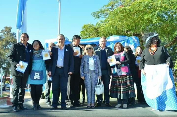Fue el 25 de Mayo en la plaza San MartÃn en el marco de los festejos llevados adelante por los Jardines de Infantes durante la mañana. Nievas junto al Pte del Concejo Pio Sander, funcionarios de su gabinete, La Directora Regional y Supervisores hicieron entrega de Banderas de Mástil a directoras y docentes de los Jardines de Infantes de Castelli.