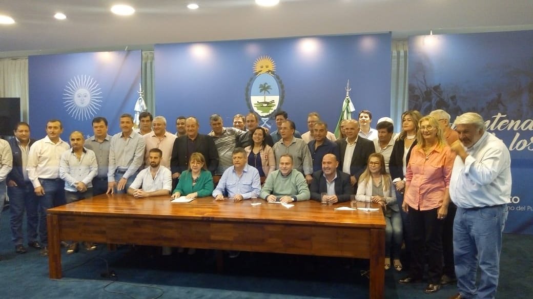 El gobernador Domingo Peppo rubricó este jueves un convenio con 56 municipios para la contratación y capacitación de 1.500 auxiliares de servicios, quienes cumplen las tareas de limpieza y cuidado de los establecimientos educativos.