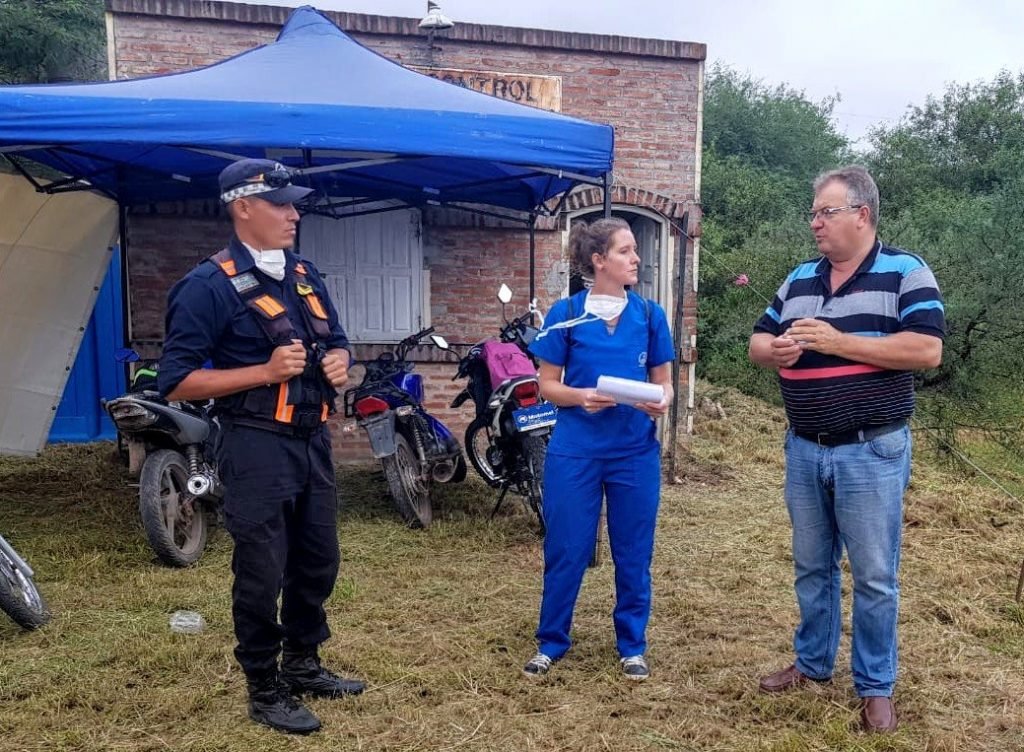 En la tarde de éste miércoles el propio Intendente ntendente Pío Oscar Sander y el Secretario de Gobierno Ismael Barnes recorrieron los puestos de control ubicados en los accesos de ingreso a la ciudad sobre Ruta 95 donde personal Municipal, Policial y de Salud están llevando adelante el protocolo de seguridad dispuesto entre el Intendente, Concejo Deliberante, representantes de las Fuerzas de Aeguridad, Justicia, Salud y Agentes de Tránsito que consiste en llevar adelante lo dispuesto en decreto 433/20 para la prevención de propagación de la Pandemia Mundial.